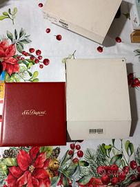 Vendo elegante accendino originale S.T. Dupont Paris con finitura metallica rigata e design cilindrico, oggetto di alta qualità e raffinatezza tipico della maison francese. L’accendino è completo di scatola originale, scatola esterna, libretti e card di garanzia, come visibile nelle foto.