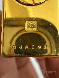 Accendino S.T. Dupont Linea 1 Oro con Linee e Bande Verticali, fuori produzione. Questo accendino Linea 1, misura piccola, placcato oro, funziona benissimo. Tiene il gas ed è in ottime condizioni esteriori.