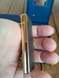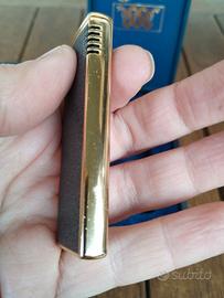 Accendino Vintage Cobra con scatola originale Dimensione accendino cm 7 x 2,5 x 1 cm Splendido accendino vintage da collezione firmato Cobra, caratterizzato da un design elegante e sottile tipico degli anni '70/'80. Un pezzo di classe, perfetto per collezionisti o come accessorio di stile. Marca: Cobra (Logo con i due serpenti intrecciati). Design: Finitura bicolore grigio satinato e nero con bordi dorati. Molto sottile e tascabile. Condizioni Estetiche: Ottime condizioni generali, come visibile in foto. Qualche leggero segno del tempo che ne attesta l'autenticità. Accessori: Include la sua scatola originale rigida blu con interno in velluto e la sovraccoperta in cartone (che presenta alcuni segni di usura). Funzionamento: Trattandosi di un oggetto vintage fermo da tempo, viene venduto come da revisionare (potrebbe necessitare di ricarica gas o cambio pietrina). La valvola di ricarica e la vite per la pietrina sono visibili sul fondo. #CobraLighter #VintageLighter #AccendinoVintage #Collezionismo #CobraSnake #OldSchool #AccendinoCobra #VintageStyle #GiftIdea #SmokingAccessories #LighterCollector