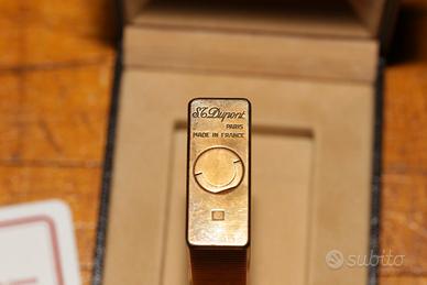 Accendino Vintage Dupont in oro, modello Ligne 1 Guilloche, da collezione, con scatola originale e certificati.