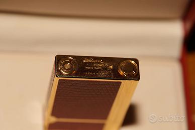 Accendino Vintage Dupont modello Gatsby, in pelle e oro, da collezione, mai usato, con scatola e certificati.