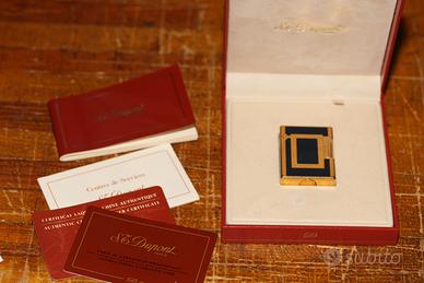 Accendino Vintage Dupont, Linea 1 Lacca Blu Ornee e oro, da collezione, mai usato, con scatola e certificati.