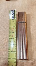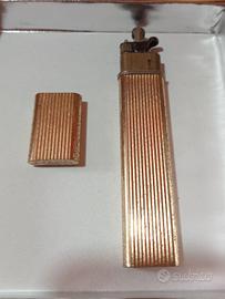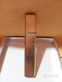 Elegante accendino vintage con finitura dorata e design rigato. Un pezzo classico per collezionisti.