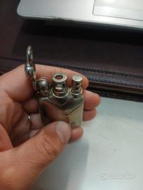 Vendo accendino vintage marchiato Monopol (Germania), con caratteristico logo “M con corona”. Design molto particolare e ricercato con tripla struttura superiore, ideale per collezionisti o appassionati. ✔ Funzionante (testato) ✔ Da ricaricare (attualmente scarico) ✔ Buone condizioni estetiche, normali segni del tempo Oggetto d’epoca anni ‘50/‘70 circa. Perfetto sia da collezione che da utilizzo.