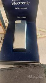 accendinoRonson Varaflame Electronicin condizioniNOS(New Old Stock - fondo di magazzino), completo di scatola originale e con ilsigillo dell'imposta di fabbricazioneintatto, con libretto istruzioni, tagialdino assistenza e custodia in pile