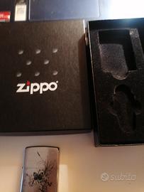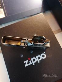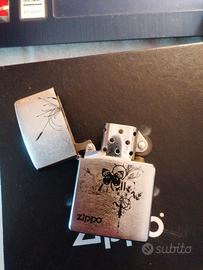 accendino Zippo originale, finitura argento satinato con incisione decorativa.