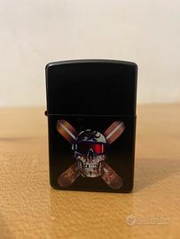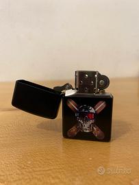 Vendo come nuovo accendino Zippo con disegno Teschio e tavole snowboard incrociate. Caricato all’epoca che è stato comprato e mai usato, ora è da ricaricare.
