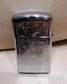Questo oggetto è un accendinoZippocon finitura cromata e incisione stile "Venetian", modello slim.