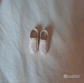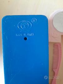 scarpe originali-Ken da ginnastica bianche; scarpette Barbie, specchiera, pettinino e spazzole, cipria, armadietto blu da casa Barbie/bambole 'made in Italy' anni 70 ( * ref. stivali rossi : uno e' rotto ).