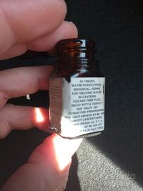 Contenitori vuoti privi di contenuto in vetro, originali provenienti da scavo, contenevano pastiglie per la potabilizzazione dell'acqua ed erano in dotazione all'esercito US durante il secondo conflitto mondiale. Agli oggetti sono state applicate delle riproduzioni di etichette per effetto scenico, anche con invecchiamento, sono da collezionare, ideali per esposizioni in vetrina, o reenact, o per rievocazioni storiche. Nota bene: i 4 contenitori in vetro sono originali, ma le etichette sono delle riproduzioni!