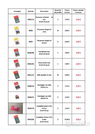 Accessori per modellismo navale Amati, nella lista è riportato l'articolo, le quantità disponibili, il prezzo di listino ed il prezzo scontato riferito al singolo pezzo e dove specificato alla confezione.