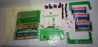 Vendo accessori subbuteo anni 80 :campo da gioco in tessuto in buone condizioni, 6 bandierine lati campo, 8 giunti per recinzione laterale e 4 per angoli, 18 pezzi recinzione, 2 reti e 2 basi porte. Inoltre libretto e poster multilingue regole di gioco originale dell'epoca. In omaggio campo da gioco in tessuto un po' usurato ma ancora impiegabile