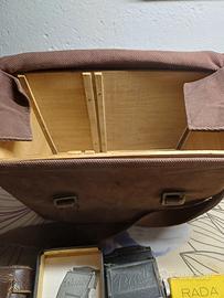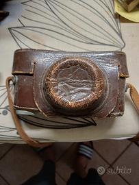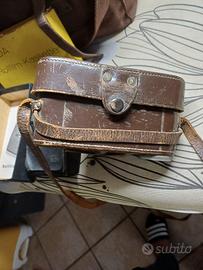 Vendo 1 borsa vintage con interni in legno, 1 custodia per macchina fotografica Leica, 1 Rollfilm Kassette danneggiata, 1 lente.