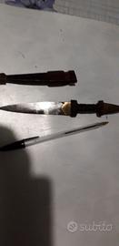 ACCESSORIO IN DOTAZIONE ALLE TRUPPE ASCARI AFRICA 1936 40 IN LEGNO TEK SCOLPITO OTTONE E ACCIAIO