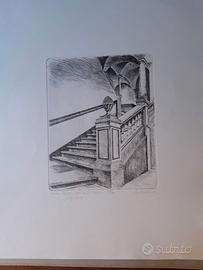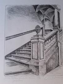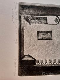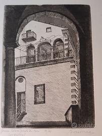 acquaforte originale firmata Enrico Piras, riproduce un aspetto di Palazzo Spinola Dei Marmi, sede banco Sardegna Genova, anno 1991 materia : carta , tecnica acquaforte