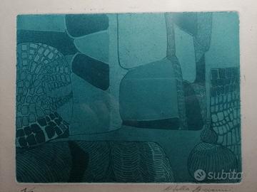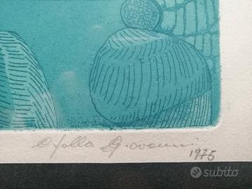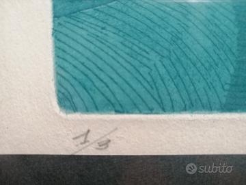 Quadro con incisione firmata e datata, tiratura limitata, con cornice originale, grafica vintage, design anni 70. Misure in foto. Zona boccea. No poste italiane