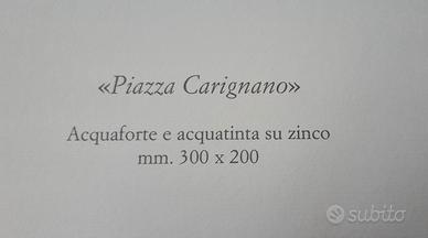 Opera originale dell’artista italiano Riccardo Cordero. Titolo: Piazza Carignano Tecnica: acquaforte e acquatinta su lastra di zinco Numerazione: 39/100 Firmata a mano dall’artista a matita. 📐 Dimensioni foglio: 60 × 40 cm 📐 Dimensioni lastra incisa: circa 30 × 20 cm Condizioni: perfette, mai incorniciata, mai esposta, carta integra senza pieghe, macchie o ingiallimenti. Bordo bianco originale molto ampio (tipico delle stampe di pregio). Ideale per collezionisti di grafica contemporanea, architettura urbana e incisione d’arte italiana. ⚠️ Spedizione con BRT o Inpost viste dimensioni imballaggio. No Locker o poste italiane (dimensioni non consentite)⚠️