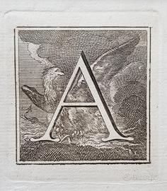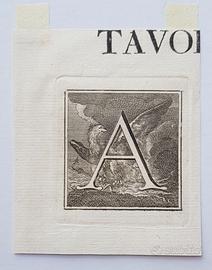 Acquaforte stampa antica del 1757, lettera "A".