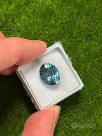 Acquamarina 7.05 ct taglio Ovale certificata. Dimensioni 13x10x6 mm. La pietra è in perfette condizioni. Eccellente taglio e trasparenza. Spedita con certificato