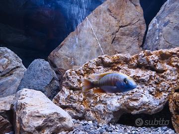 vendo acquario allestito malawi già avviato con rocce e 5 pesci più un pulitore.