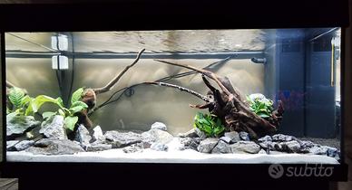 Acquario JUWEL Rio 180 LED nero completo – con arredi, Dragon Stone e legni! Vendo acquario JUWEL Rio 180 LED colore nero. - Usato ma in ottime condizioni - Completo di arredi, rocce e legni naturali (come da foto) - Ideale sia per principianti che per acquariofili esperti Caratteristiche principali - Dimensioni: 101 x 41 x 50 cm - Capacità: 180 litri - Peso: 29,5 kg - Colore: nero - Struttura solida con telaio di sicurezza inferiore - Illuminazione LED avanzata Sistema MultiLux LED JUWEL: - lampade da 17W (DAY + NATURE), unità completamente impermeabile e sicura Filtraggio potente e silenzioso Sistema interno Bioflow M: - Materiali filtranti inclusi - Pompa Eccoflow 600 (600 L/h) - Riscaldamento affidabile - Riscaldatore JUWEL 200W Temperatura regolabile: 20–30°C - Vetro borosilicato resistente Allestimento incluso - Dragon Stone (Ohko Stone), colore grigio-bluastro con sfumature chiare superficie irregolare, porosa e ricca di cavità, forma naturale stratificata molto scenografica. Roccia inerte: non altera pH e durezza dell’acqua -Legni naturali (driftwood / spider wood), rami e radici decorative Aspetto elegante e naturale, perfetti per creare un layout armonioso Mobile coordinato incluso - Dimensioni: 101 x 41 x 73 cm - Portata fino a 350 kg - Ampio spazio interno, tre ante utlizzabili - Perfettamente abbinato all’acquario Contattami per maggiori info