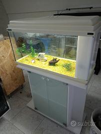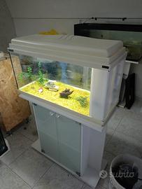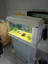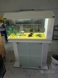 cedo acquario in buone condizioni, le misure sono avanti cm 80, profondo cm 30, altezza cm 45. È completo di filtro con relativi materiali filtranti e pompa di ricircolo, luce funzionante, sabbietta e arredamento come da foto. lo vendo a euro 90. Per chi vuole pure il tavolo aggiungere euro 40.Chi è interessato può chiamare questo numero 3387457294.