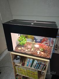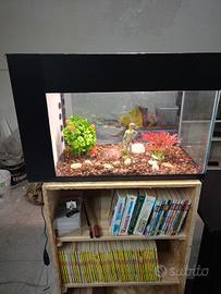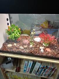 cedo acquario in buone condizioni, le misure sono avanti cm 60, profondo cm 30, altezza cm 41. È completo di filtro con relativi materiali filtranti e pompa di ricircolo, impianto elettrico funzionante, sabbietta e arredamento come da foto. Lo cedo a euro 50. per chi è interessato può chiamare questo numero 3387457294.