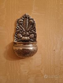 Acquasantiera in peltro argentato del XIX o inizio XX secolo.