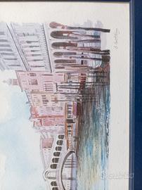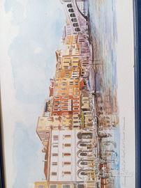 Vendo acquerello originale Bruna Cerutti Fuga con cornice blu in legno. misure:73,5x31,5(cornice inclusa).