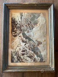 Vendo piccolo acquerello originale su carta raffigurante paesaggio montano, risalente al ‘900, completo di cornice in legno originale.