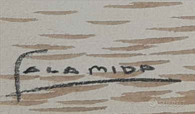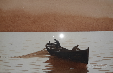 Raffinato acquerello del celebre pittore Umberto Calamida (Genova, 1896-1964), rappresentante una marina. Firmata e incorniciata. Dimensioni della cornice: cm 49x37. Dimensioni dell'acquerello: cm 21x15