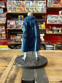 I pantaloni della figura presentano dettagli accurati, con macchie che richiamano il suo iconico cappello da pirata, creando un connubio di stile e ruggine da avventuriero dei mari. Il mantello svolazzante aggiunge un elemento dinamico alla scena, catturando l'energia e la grinta del personaggio.