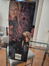 Eccezionale e storica action figure del personaggio Jareth il re dei Goblin interpretato da David Bowie nel film Labyrinth (1986). Action figure perfetta, come nuova e mai tenuta fuori dalla scatola e sempre al buio, con tutti i pezzi accessori presenti (mantello, sfera di vetro e pugno). Scatola non in perfette condizioni come da foto causa anni e trasloco.