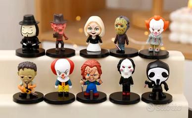 Vendo piccole statue, raffiguranti i cattivi di tutti i film horror più famosi. Da Pennywise con IT, a Jason di venerdì 13 fino ad arrivare a Chucky. Le statue vengono vendute completamente nuove e ancora nelle loro originali buste di plastica. IL PREZZO È PER SINGOLA STATUA. SE PRESE TUTTE, FORNISCO UNO SCONTO MAGGIORE. Per ulteriori info contattatemi in privato.