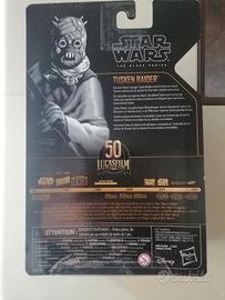 Da Hasbro per la Star Wars The Black Series. in occasione del 50 ° anniversario di Lucasfilm questa figure alta oltre 15 cm. La figure di Tusken Raider è molto articolata, è chiusa nella sua confezione a blister rigido, include 4 accessori ed ha decorazioni premium su più punti di articolazione. Particolare non indifferente, questa figure ha vestititi in tessuto. I prodotti Star Wars sono prodotti da Hasbro su licenza di Lucasfilm Ltd. Figure nuova EAN 5010993825370.