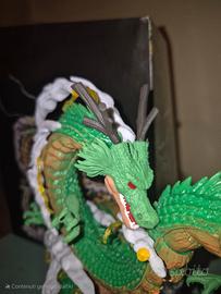 Questa non è una semplice action figure, ma un pezzo da esposizione curato nei minimi dettagli. La scultura cattura la maestosità di Shenron, con le sue squame verdi e dorate, e il suo sguardo imponente, mentre la piccola figura di Goku aggiunge un tocco di tenerezza e nostalgia.