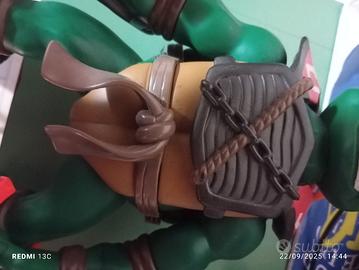 Vendo action figure originale delle Teenage Mutant Ninja Turtles (Tartarughe Ninja), personaggio Michelangelo con bandana arancione.