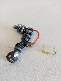 Completa di tutti gli accessori: occhiali, braccio aggiuntivo, gattino (mancante di un baffo), croce con catena, base con cactus e pistola.