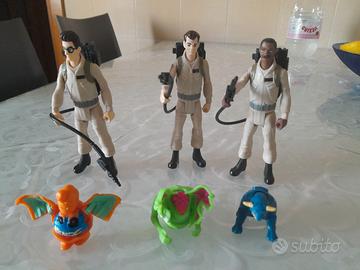 Set di 3 action figures dei Ghostbusters Hasbro, in buone condizioni, più 3 fantasmini.