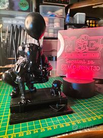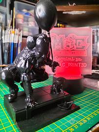 Statua in resina 3D raffigurante Pennywise con palloncino nero, ispirata al film It. - Dettagli curati e finitura lucida. - Base con dettagli a tema, inclusa una barchetta di carta e un gattino - Ideale per collezionisti e appassionati del genere horror. Viene fornita assemblata e prima mano di primer data. Pronta per essere verniciata possibilità di personalizzare qualsiasi personaggio contatto DM