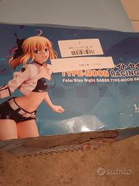 L'immagine mostra una figure di Saber, in particolare la versione "Type-Moon Racing Ver."di Altria Pendragon, un personaggio della serie "Fate/Stay Night Unlimited Blade Works".