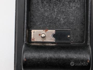 Rollex patent roll film back anni 30 in buono stato con qualche segno di usura visibile in foto. Tenute duli luce apparentemente sane in feltro e chiavetta per avanzare la pellicola gira liberamente. Non è testato con pellicola ed è venduto con formula visto e piaciuto data l'età dell'oggetto.