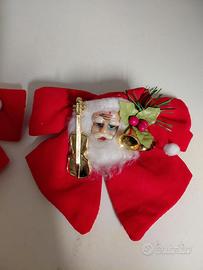 Set di due decorazioni natalizie a forma di fiocco rosso con Babbo Natale.