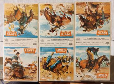 vendo adesivi vintage Levis composti da 3 serie da 6 adesivi l'una. Serie Grande America, Serie Rodeo, Serie Indiani. Ancora accoppiati. come nuovi.