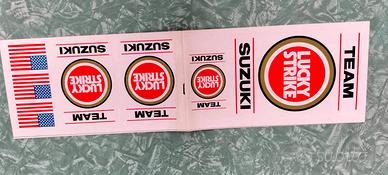 Adesivi vintage Anni 80 Lucky Strike Suzuki per moto da corsa Superbike Misura 42 X 12 Posso spedire personalmente al costo di € 1.50