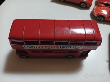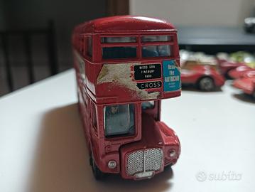 Modellino vintage, made in England, anno 1969 circa di produzione, dello storico autobus Londinese. Oggetto ben conservato, presenta qualche ritocchino di verniciatura. Versione con cerchi di metallo e pneumatici in gomma.