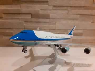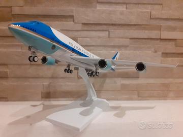 Aereo Boeing 747 scala 1/200 nuovo di zecca, tolto dalla confezione solo per le foto, fusoliera in metallo lunghezza 30 cm, apertura alare 28 cm, completo di piedistallo e scatola originale. Acquisti multipli unica spedizione.
