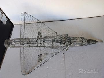 Aereo Caccia scheletrato, costruito con filo di ferro, Carlinga, Flap, Timone e Ruote mobili, lunghezza cm 34, larghezza cm 22, altezza cm 11. non scambio.