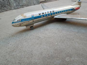 Cedo uno splendido aereo di linea in latta della compagnia United anni '70 a batteria con porta pile via filo smontabile e provvisto di vano di carico apribile.