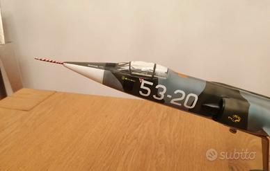 Stupendo Modello speciale da Collezione Aereo Lockheed F104G Starfighter ( 53° Stormo Cameri ) in Scala 1/48 realizzato da artigiano Italiano a regola d' arte in resina con particolari in metallo, già completamente assemblato e verniciato, rifinito con trasparente opaco e curato nei minimi dettagli. Compreso di elegante piedestallo in acciaio satinato e con targhetta personalizzata.